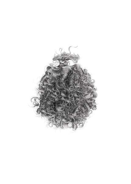 Since 2003, Lava Thomas has created drawings from hair that has been gifted to her by friends and strangers. Each drawing bears the name of its donor, serving as a portrait. Thomas’s hair drawings are executed in the style of 17th-century scientific illustration—drawn from observation in extreme detail. Cutting one’s hair offers a route to personal transformation, effecting a physical change which also signals a shift in self-image or self-perception.