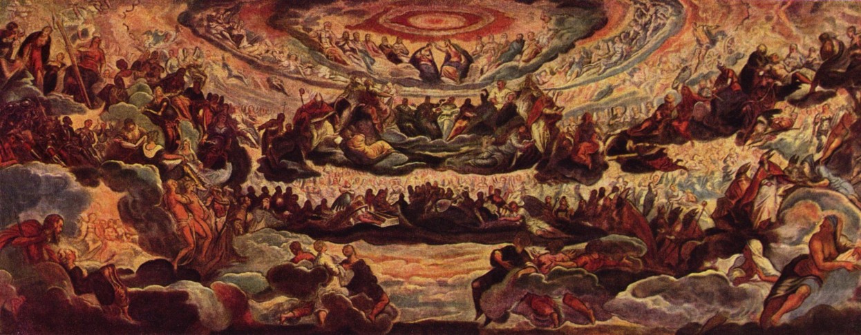 Jacobo Tintoretto. L’incoronazione della Vergine o Paradiso (The Coronation of the Virgin), 1588-92. Oil on canvas. 56.3 x 142.5 in. Courtesy of the Louvre Museum, Paris.