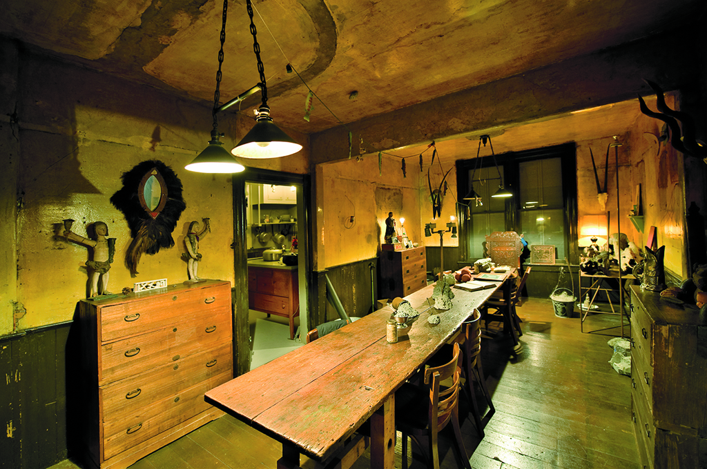 Ireland, who passed away in 2009, purchased the building in 1975, shortly after earning his MFA at the San Francisco Art Institute. He began a renovation project to turn it into a live-work space, but increasingly came to regard the building sculpturally and began a practice of altering and excavating it as a piece of lived-in installation art that he continued for the rest of his life. From the beginning, Ireland made sculptures from the debris of the renovation and adorned the walls and floors with them. No corner was left unmodified. Following in the footsteps of Kurt Schwitters’ Merzbau (1923–37) and a number of other such projects, 500 Capp Street became a destination for artists, writers, and all kinds of other visitors, as evidenced by John Ashbery’s 1983 House & Garden feature on the house (republished in 500 Capp Street).