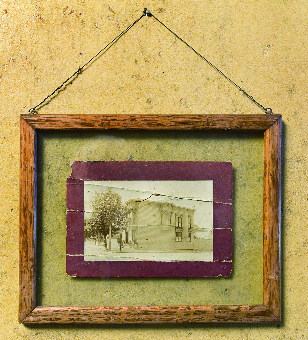 The first known photograph of 500 Capp Street (1886) hanging in the entry hall, 2007. Courtesy of UC Press.