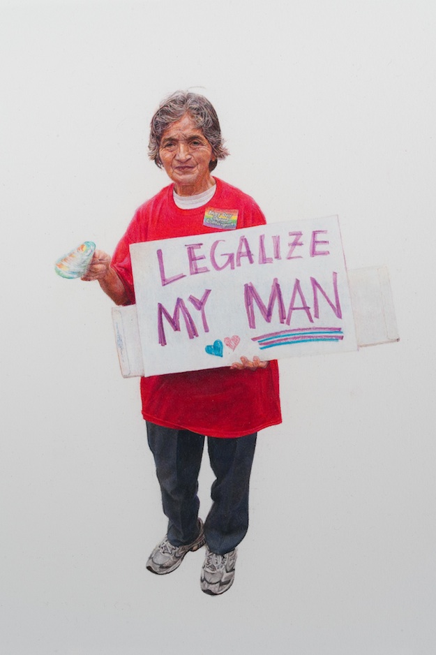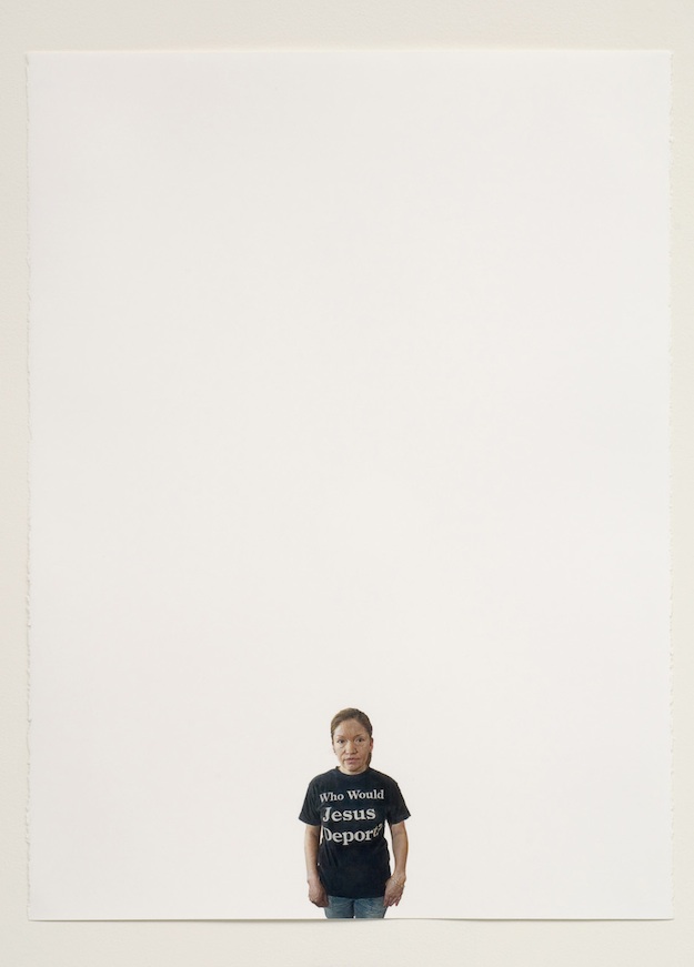 PM: In your 2011 show at your gallery, Susanne Vielmetter in Los Angeles, you focused on labor movements, the Occupy movements, bringing attention to immigration and women’s rights around issues of labor. There were several different types of drawings, including a series that depicts an individual protester on a large white field. Why did you choose to present those individuals isolated from a larger group of protesters?