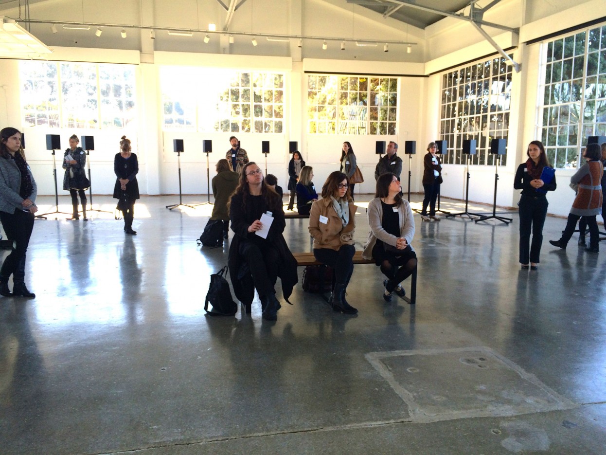 Janet Cardiff. The Forty Part Motet. 2001; installation view, Gallery 308, Fort Mason Center for Arts & Culture, 2015; Courtesy of Fort Mason Center for Arts & Culture, San Francisco, and San Francisco Museum of Modern Art. Photo: Patricia Maloney