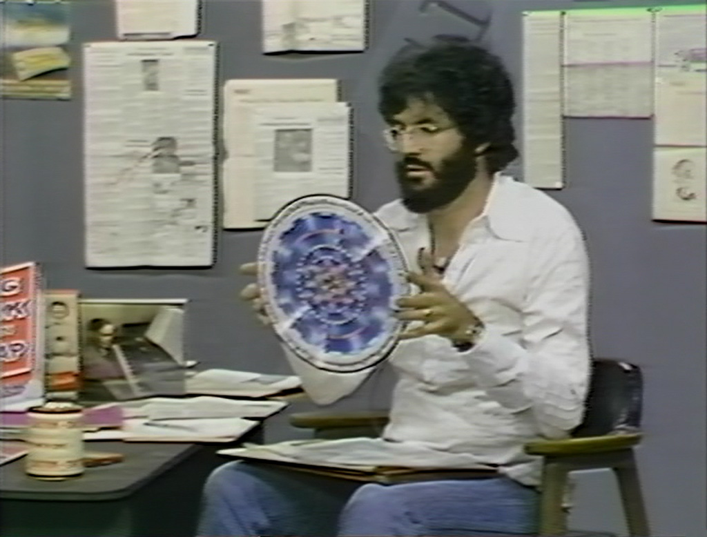 Henry S. Rosenthal. FILES: Things That Are Kept and Why episode with guest Charles Amirkhanian, composer and music director of KPFA Radio (1969-1992), 1976 (video still). © Henry S. Rosenthal.
