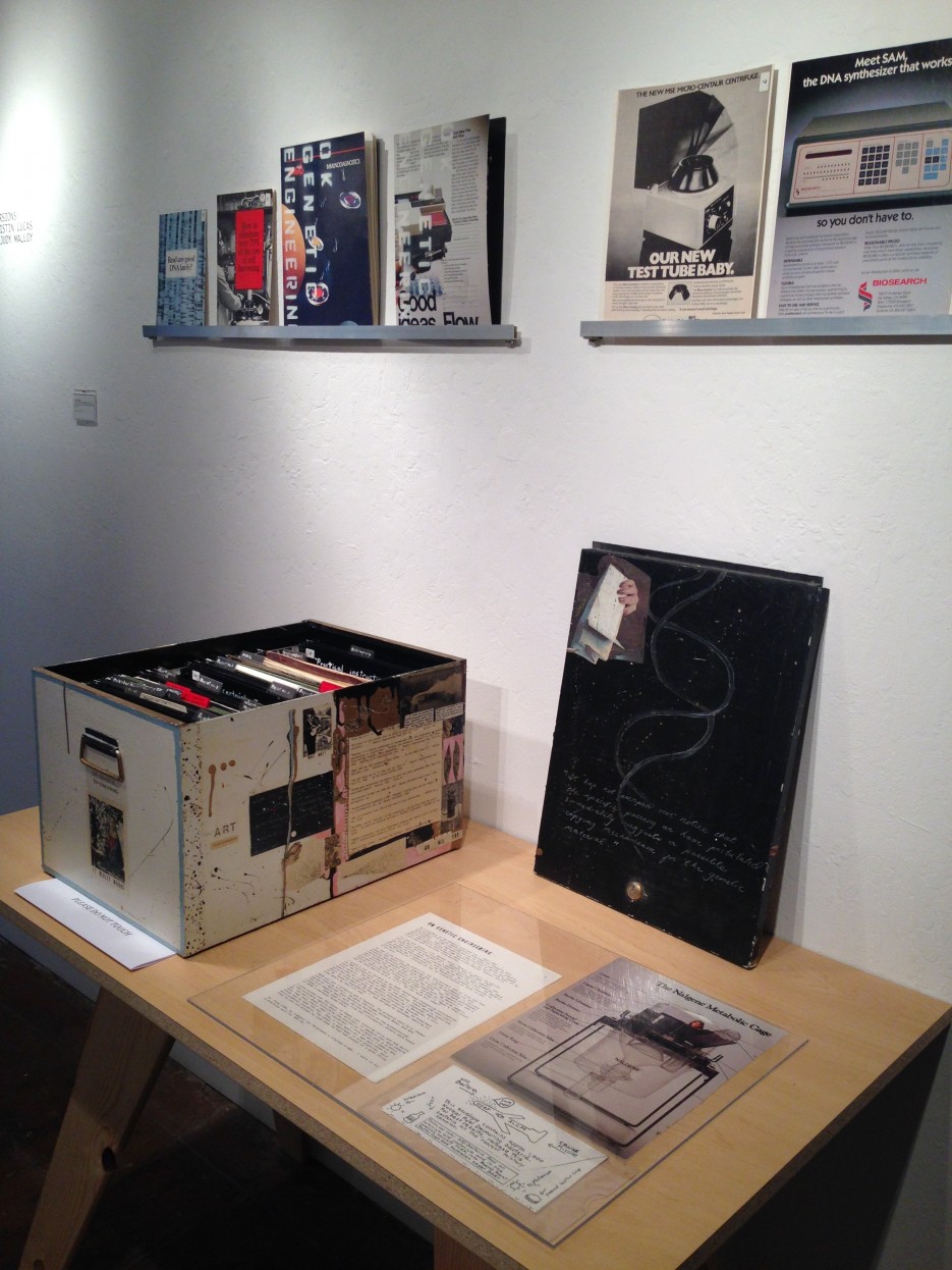 BA: The first thread I found connecting these things was in Versions, looking at Judy Malloy’s OK Genetic Engineering (1983–85) and its really extensive library of material chronicling the early phases of genetic research—the techniques and devices and the things around unpacking that code—directly across the room from Kristin Lucas’ project about renaming herself, and in fact, recoding herself through the legal system. It is unbelievably hilarious that she got the judge to play along, and maybe only in Oakland, California, can you get the judge to play along with that idea. They’re both about coding identity in a much broader sense to the self.