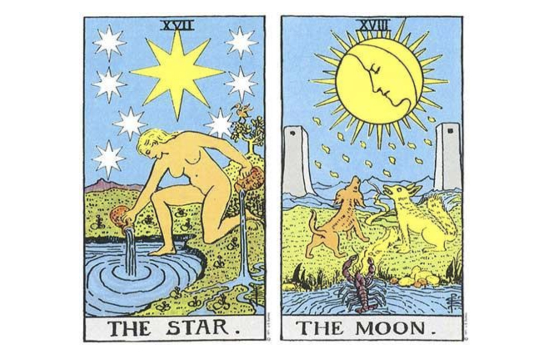 The Star and Moon cards from the Major Arcana, Rider Waite Tarot Deck.