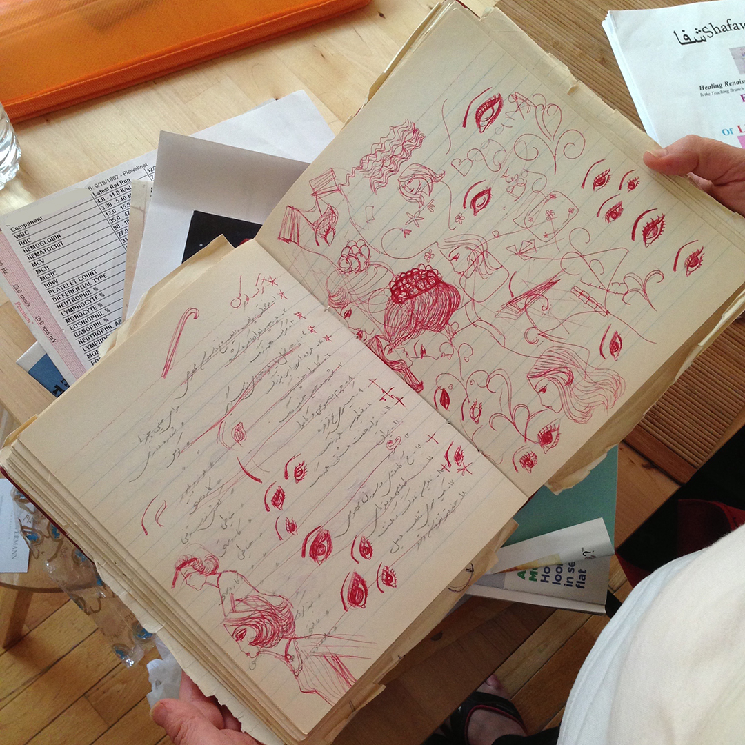 The sound was a composition of layers and layers of audio recordings from my many sittings at coffeehouses in Tehran where I frequently visited. The material was then given to my uncle and experimental sound artist Ata “Sote” Ebtekar to work with. We talked about the concept of the project and the experience I was hoping the audience would have stepping into the Elemental space, the folding of spaces (and times) upon each other, as well as hearing the residue of history. He produced a piece in response to that, using many of the sounds I had originally recorded on MiniDisc. The composition played softly in the space as folks arrived and departed…