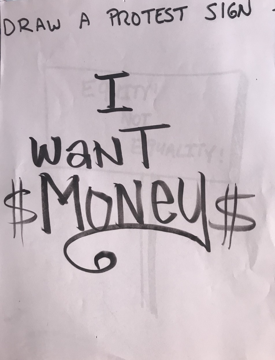 The political atmosphere now is the worst I have ever experienced, and it seems hardly anyone at school wants to make a real effort. The competitive spirit also seems to be lacking. Where’s the urgency? I suspect it all might come down to their levels of privilege. Or is it mine? Are my expectations unreasonable? My freshmen students over the years have just wanted to make their comic book or video game, get hired by Disney, and make money. The other day I gave a prompt to them to make a protest sign, and they all failed miserably. They really couldn’t express any viable form of dissent or even wit. You would have been horrified.