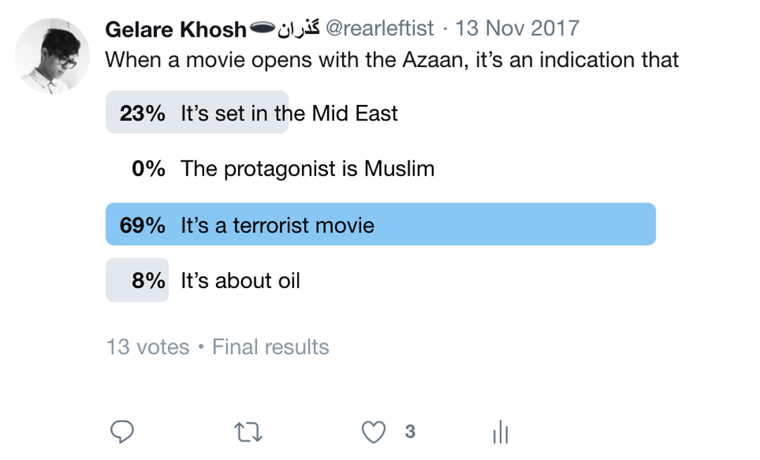 The first few years I lived in the US, I didn’t get any jobs I applied for: no barista, busboy, dishwashing jobs. This was besides the fact that I applied for “bookkeeping gigs” boasting about my love for books. I thought bookkeeping was being a personal assistant to a busy librarian! #ESL. No matter what job I applied for, I was either overqualified with a Master’s Degree, or not assimilated enough, whatever that meant. On the extension of my student visa, desperately perusing Craigslist, I applied for a gig as a movie extra. I took a headshot and brought my CV to a building on Hollywood Boulevard where I had to audition a soap opera monologue. All the while, I was hoping that the languages I spoke according to my CV would get me the job that none of the blonds there could get: an extra in a movie that starts with the sound of azaan2 to a long shot from the window of a room overlooking a third-world city—an extra in a terrorist movie.