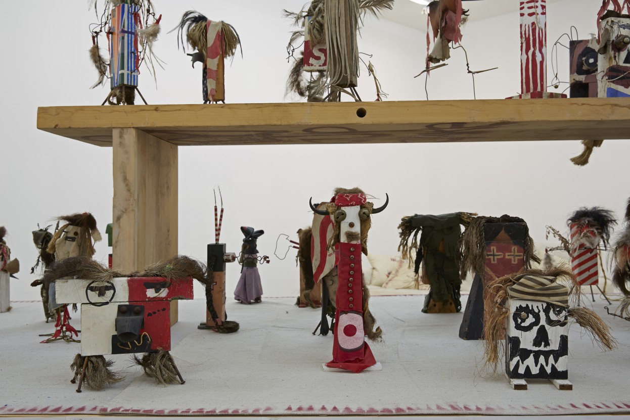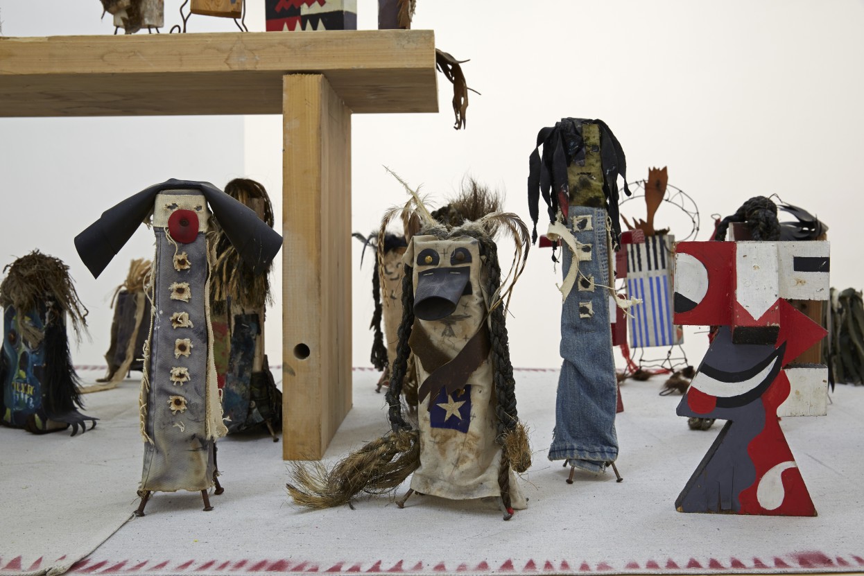 Brad Kahlhamer, Bowery Nation, 1985–2012; construction made with wood, wire, rubber, feathers, oil paint, acrylic paint, spray paint, cloth, string, rope, hair, leather, metal, pencil, bone, clay, and sage; approximately 10 x 24 x 4 feet installed; collection Thyssen-Bornemisza Art Contemporary, Vienna. Courtesy of the Artist and Jack Shainman Gallery, New York.