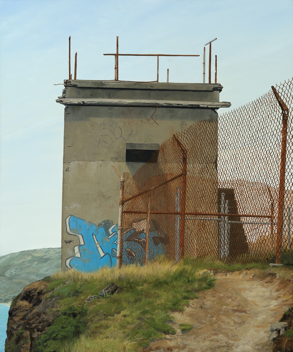 Michael Hall. Watchtower, FB-BA-PB, 2010; oil on canvas; 72 x 60 in. © Michael Hall, courtesy of the Artist and the Doreen B. Townsend Center for the Humanities, University of California, Berkeley.