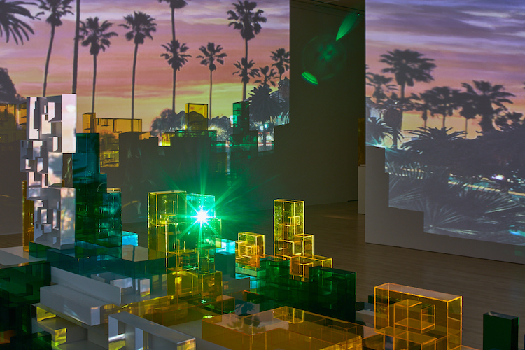 Won Ju Lim. California Dreamin', 2002; foam-core board, Plexiglas, lamp, digital-video projection, and still-image projection. Courtesy of the San José Museum of Art. Gift of the Artist and Haines Gallery. Photo: JKA Photography.