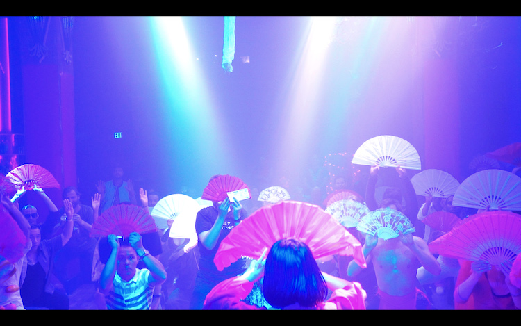 On November 4, 2018, Ma Li’s international artist collective, Kepler 452b, took over a dimly lit San Francisco nightclub for a dance and performance event entitled Interstellar Rebirth! The collective, named after the Earth-like planet discovered by the Kepler satellite, imagines voyaging to the distant planet. In the tradition of marathon-like raves, the event began at 2:00 in the afternoon and continued for sixteen hours. Among the performances, Li performed Techno Taichi: Dance Dance Republik. Using Chinese fans as props, Li jubilantly instructed the attendees in a series of movements based on tai chi to pulsing electronic music. Participants learned to move in unison, opening their fans with a swift shake of the wrist, lunging and opening their arms. Li, who like Lim has roots in Germany and California, uses a nightclub to propose opportunities for fantasy and role playing. With her roving international collective of artists, Li and her collaborator imagine an intergalactic home that leaves the political, economic, and cultural divisions of Earth behind. Li’s fantastical utopia connects disparate parts of the world and embraces the hybridity of cross-cultural exchange.