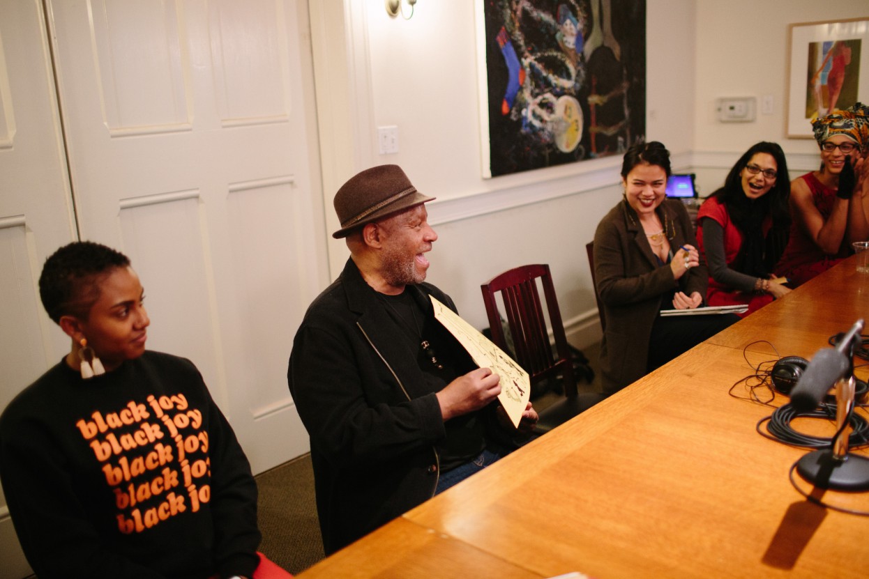Emory Douglas with CCA Students of Color Coalition. April 11, 2018. Photo: Fox Nakai.