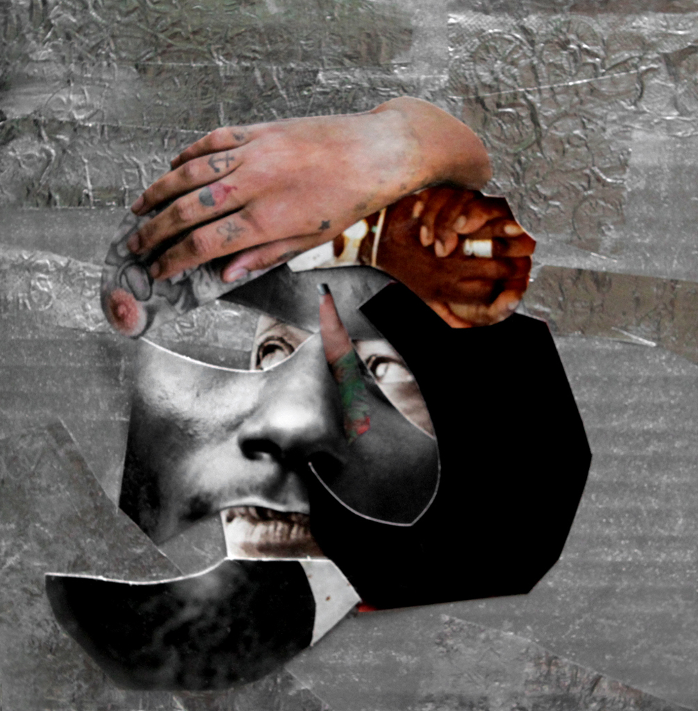 Suné Woods. Totem (3), 2013. Mixed media collage, 6 x 8 in. Courtesy of the artist.