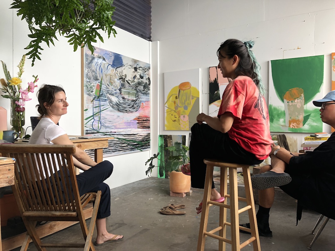 Amy Yao studio visit with Hadley Nunes at Lana Lane Studios, Honolulu, November 20, 2017. Courtesy of TRADES A.i.R. Photo: Don Felix Cervantes.