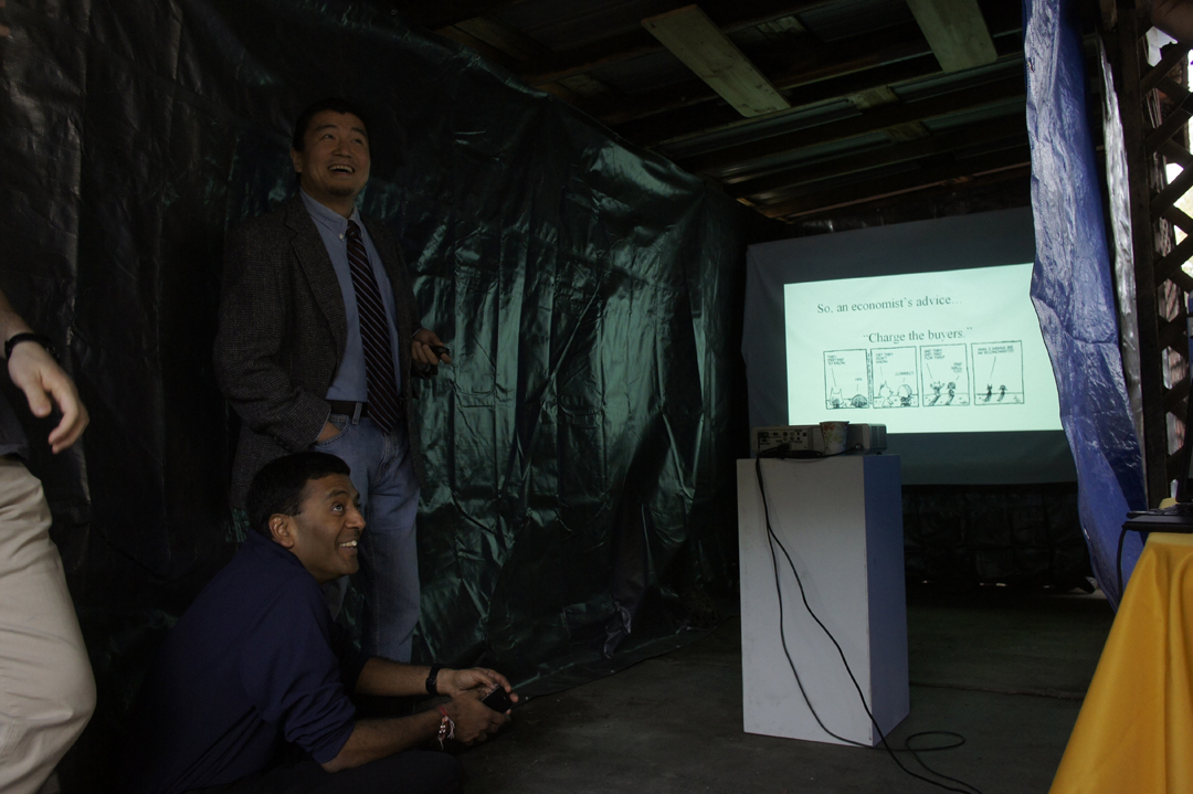 We even used to do events. Perhaps one of the most memorable ones was Dickson Schneider. He sells work commercially, but also does this project called the FREE ART Project, where he just gives away his artwork for free. My background is in economics and visual arts—I worked on Wall Street—so the notion of giving away artwork was so bizarre to me that I enlisted a colleague in the business school, Dongsoo Shin, who teaches economics, to give a lecture on the practice of giving away a commodity or a product. We had a lot of business professors and students come to the opening, and that was great because we were really cross-pollinating.
