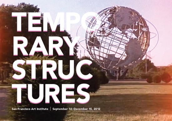 San Francisco Art Institute. Temporary Structures exhibition card, 2012; designed by Geoff Kaplan; exhibition co-curated by Glen Helfand and Cydney Payton. Photo: Glen Helfand.