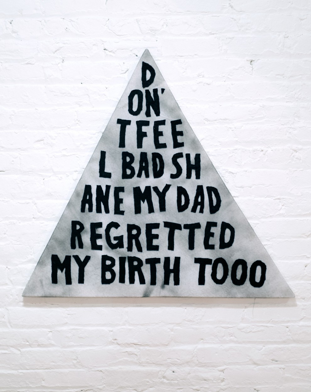 William Emmert. Regrets, 2015; hand-sewn felt on paper stretcher bars. Courtesy of the Artist.