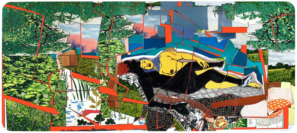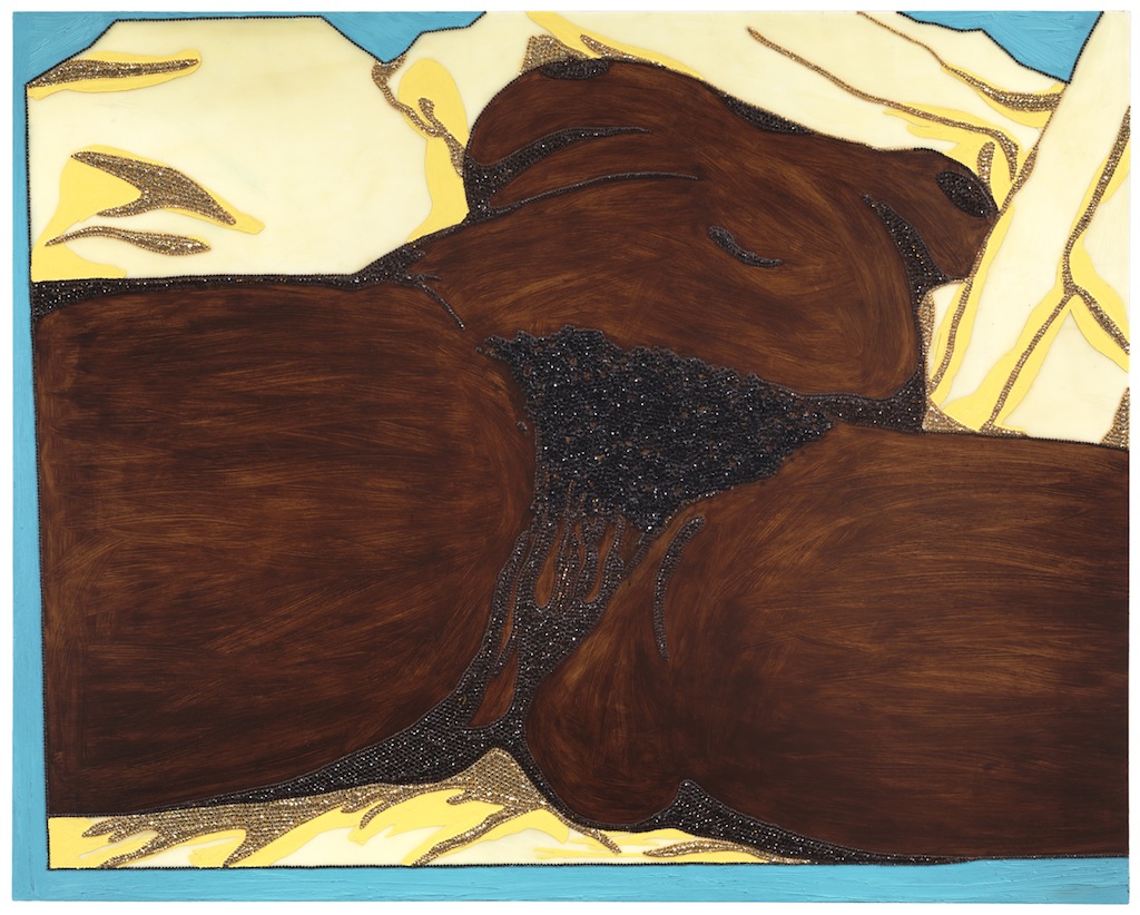 Mickalene Thomas. Sleep: Deux Femmes Noires, 2012; rhinestones, acrylic, oil, and enamel on wood panel; 108 x 240 in. Courtesy of the Artist.