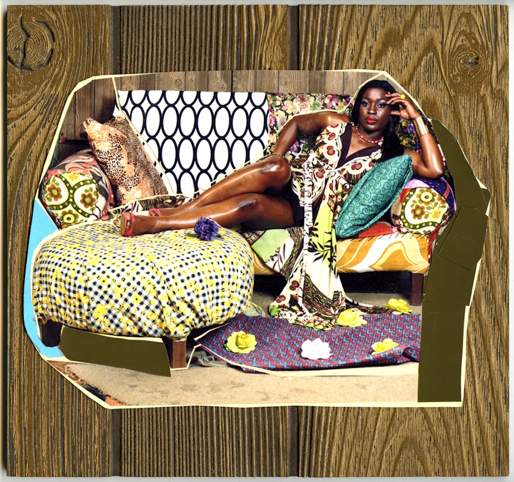 Mickalene Thomas. Origin of the Universe 1, 2012; rhinestones, acrylic, and oil on wood panel; 48 x 60 in. Courtesy of the Artist.