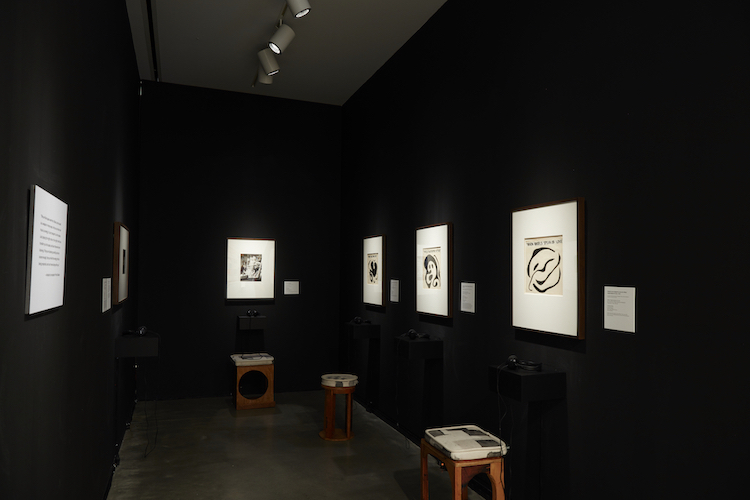 I suspect, however, that my reticence to fully listen lies more with my overall inability to place the music within the historical context in which it was created. This is an underlying issue throughout the entire exhibition. Monuments. is a retrospective spanning six decades that centers on and reflects the oeuvre and seems less concerned with the historical events in which these works were manifested. There is no purposeful reflection of the fluctuating socio-political framework of the multiple time periods in which this work exists nor the manner in which it affects the artists who maneuver within it: how it bends their ideologies and changes the way they see and hear and reshapes their understanding of what they do.