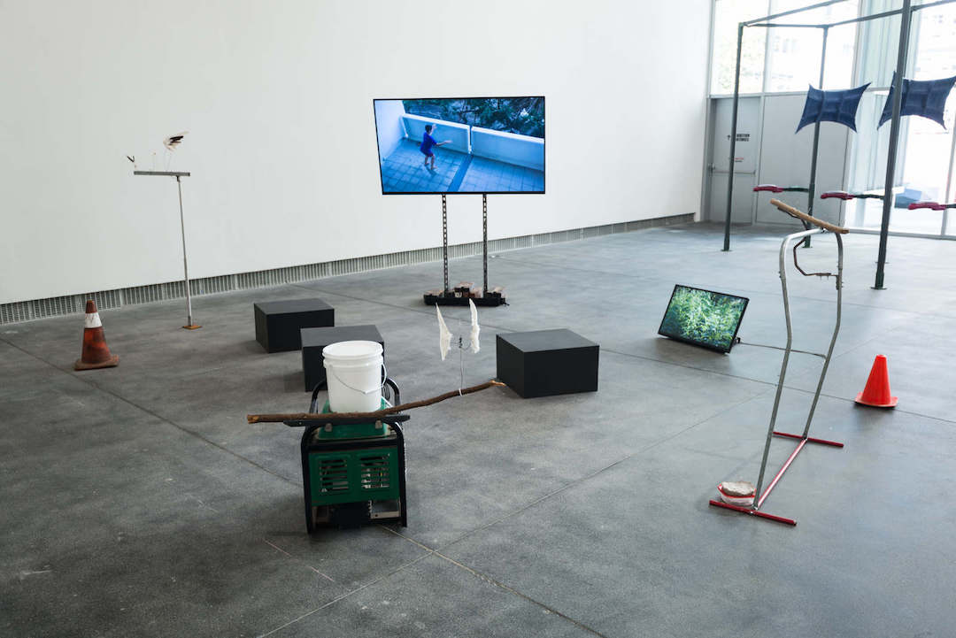 Sofía Córdova. dawn chorus ii: el niagara en bicicleta, 2018 (film still; video, color, sound, on unique Unistrut mount); 1:45. Courtesy of the Artist. Photo: Sofía Córdova.