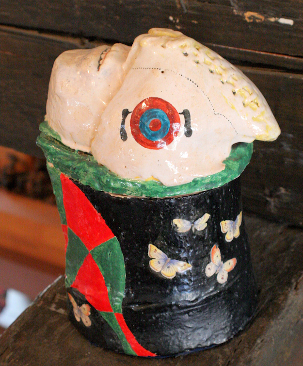 James Melchert. Ghost Jar with Butterflies, 1964; glazed ceramic sculpture; 9.5 x 8 x 8 in. Courtesy of di Rosa collection, Napa.