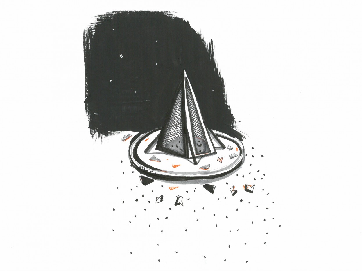 Carolyn Porras. Di Rosa Pyramid, 2014; ink on paper, 9 x 12 inches. Courtesy of the Artist.