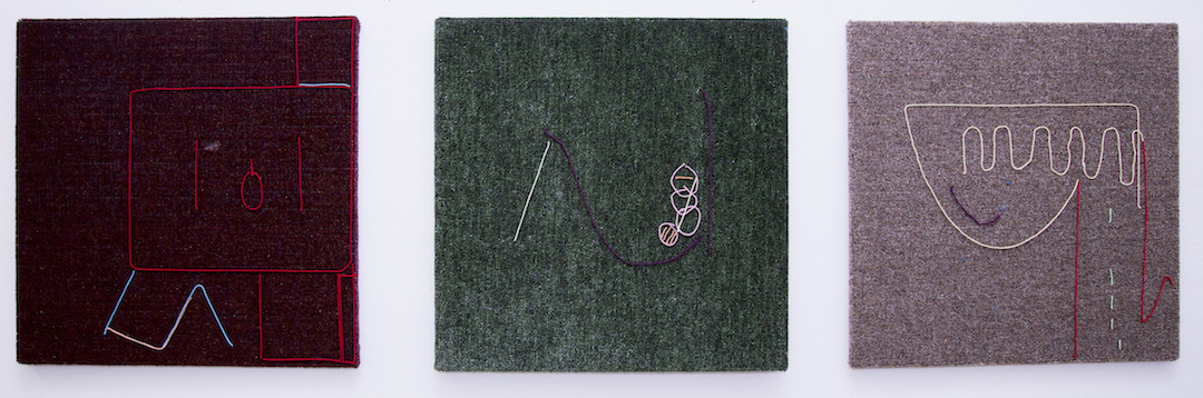 Teresa Baker. Crosshatch, 2017; Astroturf and yarn; 24 x 24 in. Courtesy of the Artist.