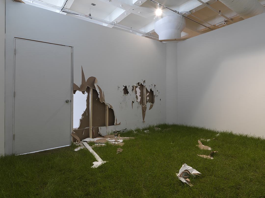 Teresa Baker. Give an Account Of, 2017; Astroturf and yarn; 34 x 179 in. Courtesy of the Artist.