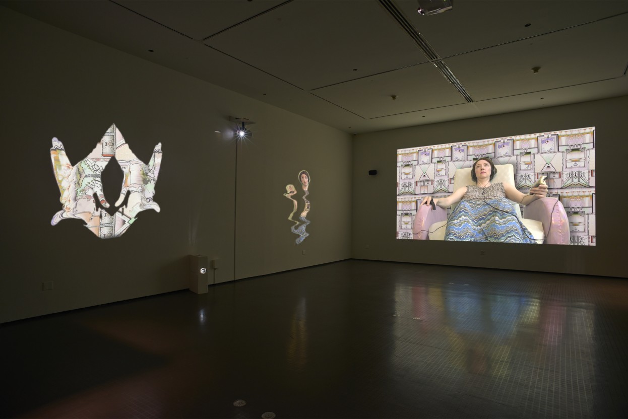 Installation view, Shana Moulton: Picture Puzzle Pattern Door, Yerba Buena Center for the Arts, 2015. Image courtesy of Phocasso/J.W. White and Yerba Buena Center for the Arts, San Francisco.