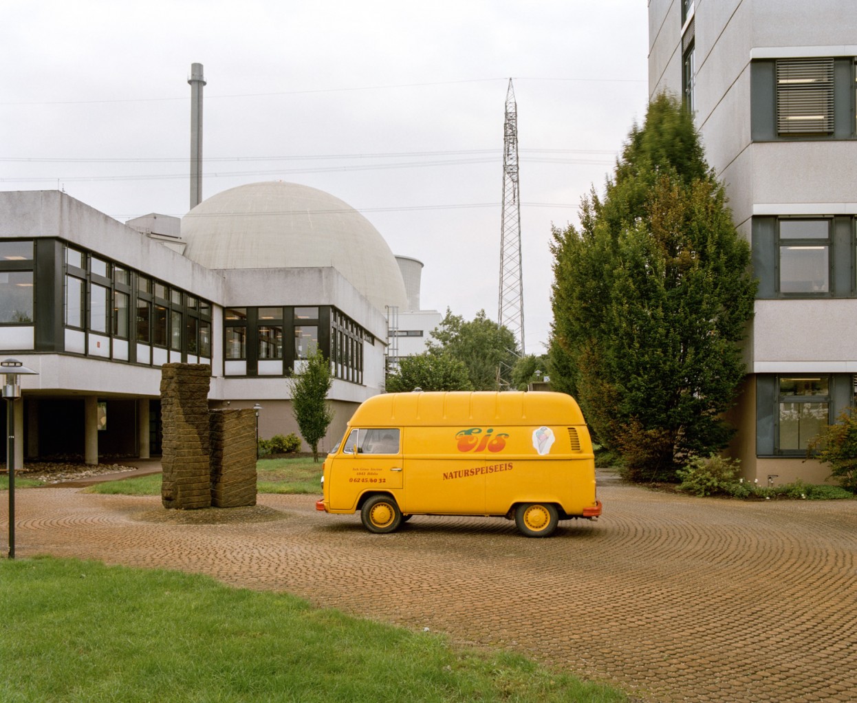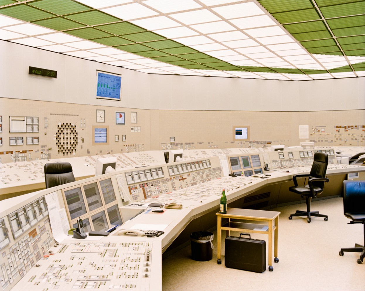 The section of Danner’s photographs, which makes up the majority of the book, systematically carries the viewer through the environments surrounding the nuclear power plants, their exteriors, and the interiors, which range from exceedingly mundane functionality to innermost spaces so bizarre they verge on otherworldly. In line with the history of German photography—most notably the extremely formal style of documenting typologies of industrial buildings carried out by Bernd and Hilla Becher—Danner’s photographs are immaculate. Like the Bechers, who also photographed the cooling towers’ unmistakable hyperboloid structures closely associated with nuclear power plants, Danner presents the subject matter with a clinical distance that lays a stillness over all the images. Additionally, aside from the plumes of steam erupting from the large cooling towers, there is no rendering of movement in any of the photos, nor is there a single person. The dearth of human life creates a prophetic glimpse into a post-homo sapiens world in which the technology we created to power our lives ultimately eradicates our species. Contrary to the foreboding, empty scenes, Danner’s photographs depict no destruction or even disruption; the world he shows is not one after a meltdown or a massacre, but one in which the humans simply vanished without a trace.