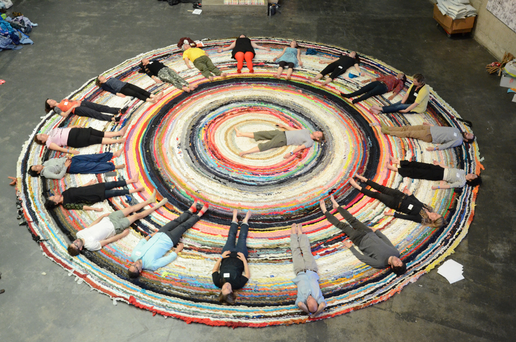 But there we all were, practicing some form of yoga on that ropey rug—Fritz Haeg’s Domestic Integrities, Part 1 (2012), to be exact—which isn’t really that easy. It isn’t, let’s say, the best way to actually feel the ground beneath one’s feet—or foot, as you had us in tree pose for an extended period. It doesn’t make for the most restful corpse pose. I couldn’t really relax, or let go of the ego, while you intoned: