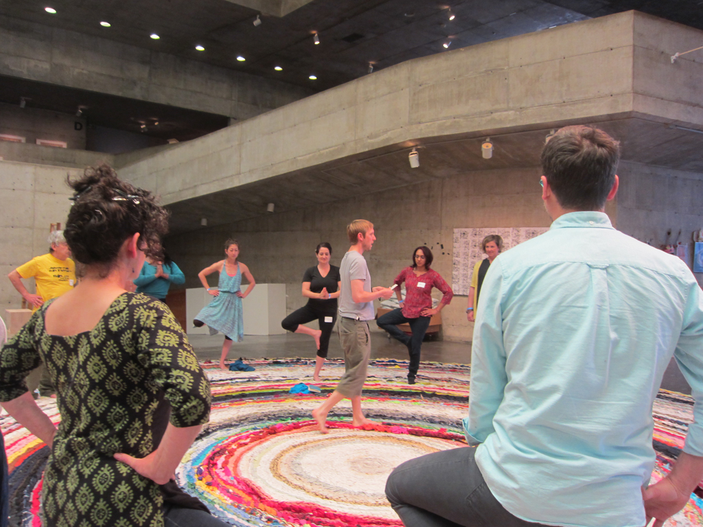 Yoga for Adjuncts: The Somatics of Human Capital workshop, Valuing Laboring in the Arts practicum, April 19, 2014, UC Berkeley Art Museum. Courtesy of the Arts Research Center, UC Berkeley. Photo: Megan Hoetger.