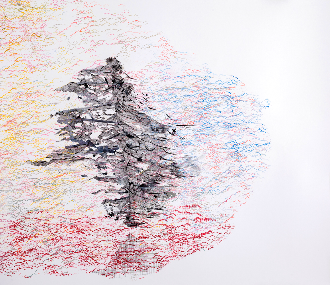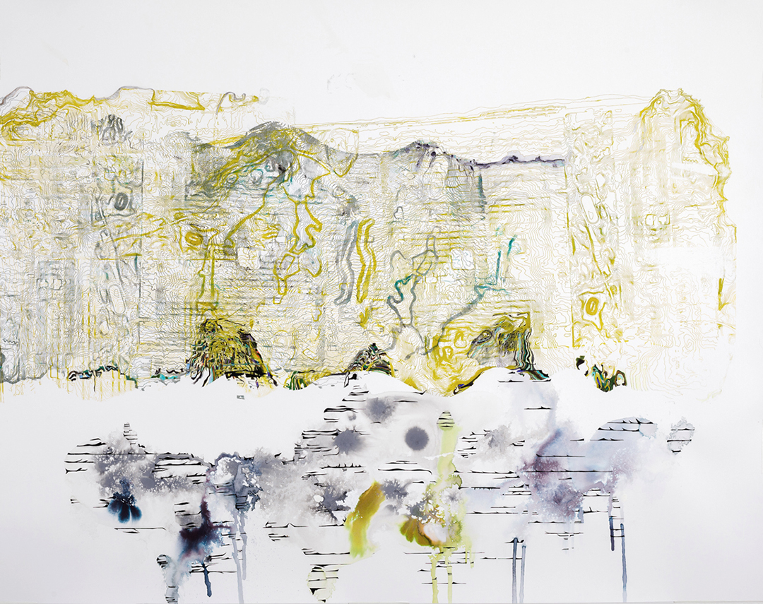 Hughen/Starkweather. Antoni Ucerler, Big Sur/Japan, 2016; acrylic paint, ink, watercolor, pencil, and gouache on paper; 30.25 x 39.75 in. Courtesy of the Artists.