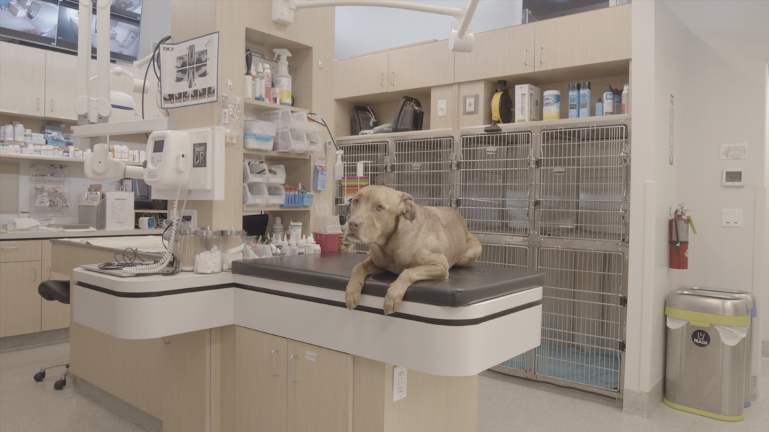 The video returns to the pooch-strewn vet office, with text stating the impossibility of measuring a dog’s vision, as human eye exams don’t pertain to them. With this, Cha seems to suggest that there is a lot we don’t knowabout animals and AI—the recipients of our personal problems and thoughts.