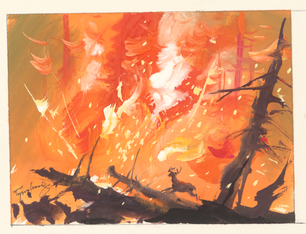 Tyrus Wong, Edge of Gorge (preproduction illustration), 1958; opaque watercolor on board; 24 x 28 in. Courtesy of Tyrus Wong Family.