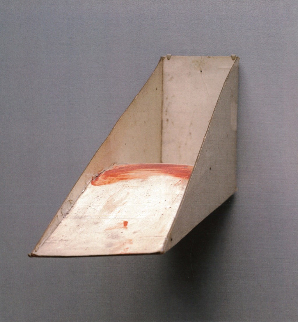 One could further construe from the exhibition that although Nauman’s formal and linguistic vocabularies were highly personal, and acknowledged as such by his immediate peers, they resonated with a broader swath of postminimalist or anti-form tendencies manifest in the works of such New York–based artists as Eva Hesse, Richard Tuttle, and Richard Serra.5 That Nauman’s work additionally evinced the specific circumstances of its making was perhaps less immediately evident to the uninitiated. Art production at UC Davis was dominated at the time by the ceramics department, which was led by Arneson. Nauman’s early experimentation with the medium under Arneson’s tutelage, coupled with his growing disenchantment with painting, led him increasingly towards sculpture. For example, the slant step, a curious readymade that Nauman acquired in Mill Valley, California, inspired a key sculpture and drawings and generated a significant level of interest among other students and faculty.