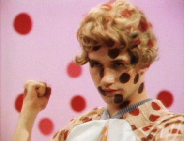 The scenes that follow this one depict Clark and his troupe in various studios, apartments, or stages waking, walking, practicing, performing, filming, cavorting, dressing, sleeping, and sleeping together. Interspersed throughout these displays of stunning, provocative choreography and outlandishly original costumes are breezy meanderings through the gritty urban post-punk 1980s London cityscape. After night falls, Clark gets ready to go out with Bowery and guests, ducks out for a date, and then arrives at the club to be greeted with kisses and embraces from a progression of fans and collaborators. He takes the stage and leads the crowd in a perfectly synchronized dance—a looping series of gestures executed in concert. At home around dawn, though, Clark ends the day with a solo dance in plain underwear to Elvis singing Are you Lonesome Tonight: “You know someone said the world is a stage, and each must play his part.”