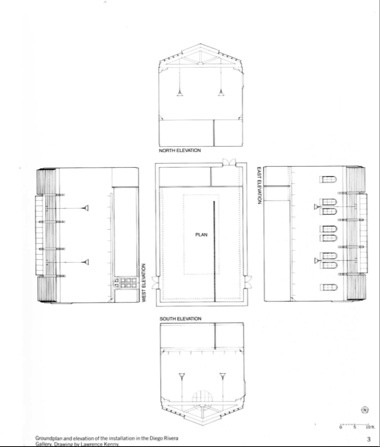 Michael Asher. Groundplan and elevation drawing for 1969 installation in the Diego Rivera Gallery, San Francisco Art Institute. Drawing by Lawrence Kenny.
