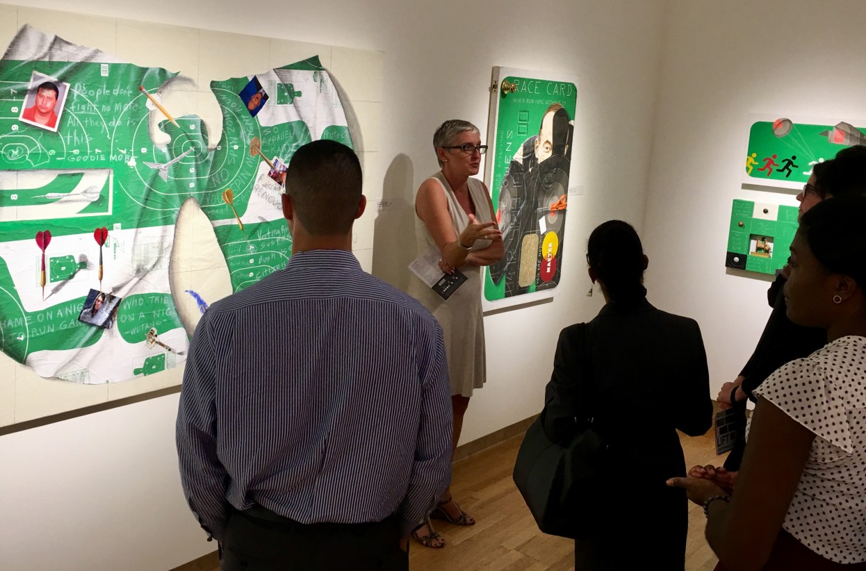 Hope McMath, then-director of the Cummer Museum, giving a tour of LIFT: Contemporary Expressions of the African American Experience in 2016. Photo courtesy of Chrys Yates.