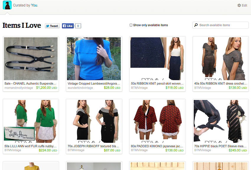 Screen shot of the author's Etsy favorites. Courtesy of the author.