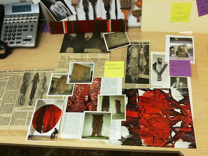Study Board for Laurie Herrick’s Open Warp weavings; created by Lauren Raburn, curatorial assistant, from the artist’s personal archives on the occasion of Laurie Herrick: Weaving Yesterday, Today and Tomorrow, Museum of Contemporary Craft, Portland, in partnership with Pacific Northwest College of Art, March 17, 2011 – July 30, 2011. Photo: Namita Gupta Wiggers