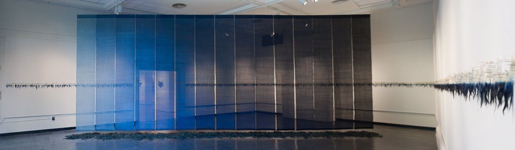 Rowland Ricketts, III. I am Ai, We are Ai – warehouse installation, 2012; Indigo dyed ramie; Installation view at the 2012 National Cultural Festival, Tokushima, Japan. Courtesy of the Artist.