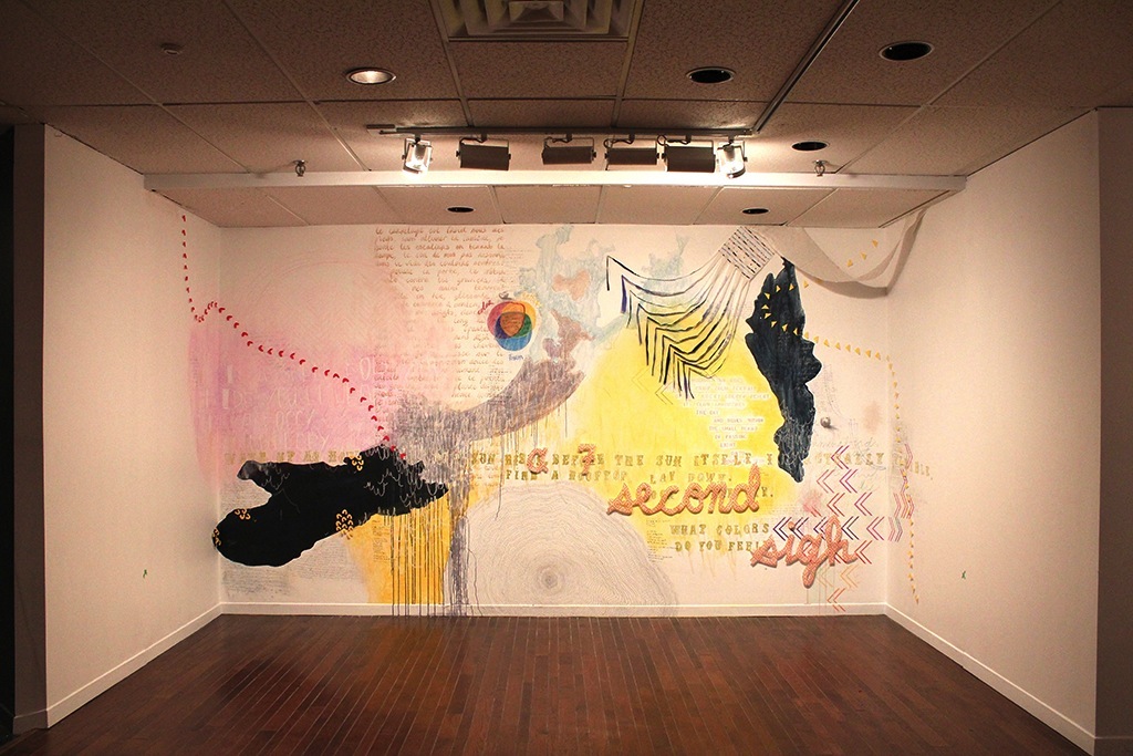 The Color Collective. RE: Spec-trum, 2012; Natural pigments, colored pencils, chalk, mail art, pins, paper, graphite, rice paper; Installation view at the Textile Museum of Canada, Toronto, ON. Courtesy of the Artist.