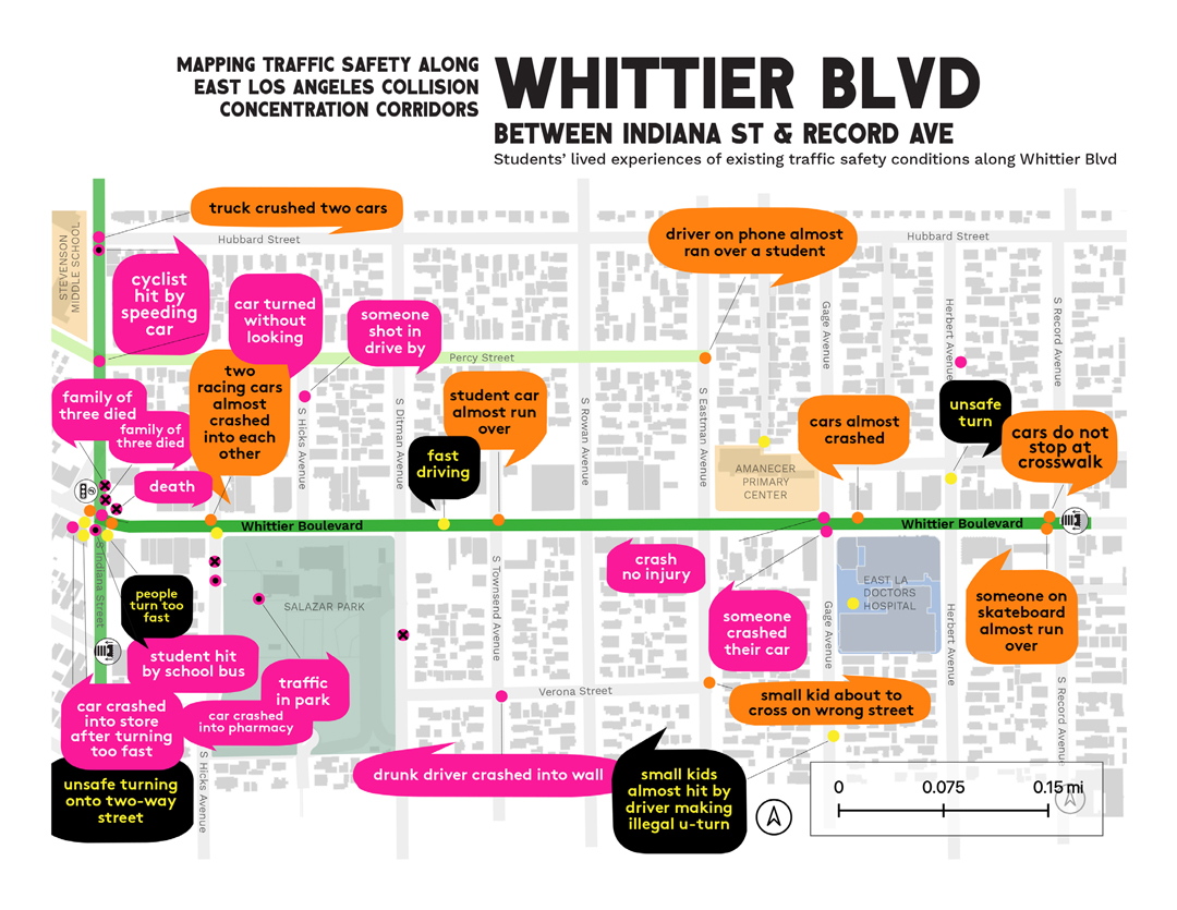 MB: What Reanne is talking about is also this idea of reciprocity, where local knowledge and community knowledge and expertise is just as important as professional expertise. It's really about changing certain hierarchies and power dynamics inherent within the way institutions generally work. As a specific example, what we're referring to is some work around Vision Zero in Los Angeles County, where we brought together a group of transportation engineers who certainly have all the knowledge about street safety engineering, how to create safe streets, but lack the local knowledge and specificity of what's actually happening on the ground. We created an exchange where they were working directly with a group of high school students from East L.A. who shared what they know, what their families know, what they live, and what they experience around street safety with engineers who otherwise only look at datasets that are generated by the state. They lack the local knowledge and input, so we created an environment where there's a mutual exchange, not only just in the conversation, but they're also teaching students about ways to mitigate and implement street safety. It's a true exchange of knowledge and ideas that hopefully is generative.