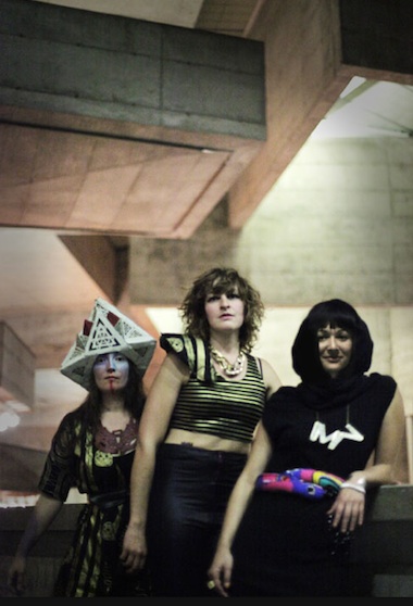 JG: Oh, absolutely. For instance, the drummer builds robots, and so she’s built a few that we have played as instruments. And she built a dodecahedron drum, where every side of it is a different drum pad. Then Caryl’s background is in shadow puppets and theatre, so we work with lights and projectors a lot. It’s been really opening for me because it forces me to get out of my comfort zone, hiding behind speakers.