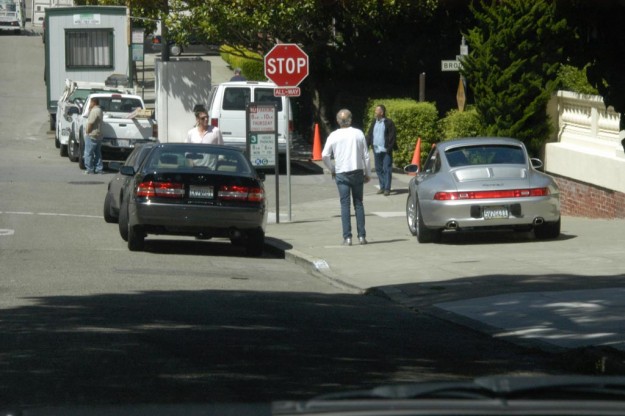 After training for two months with a licensed private investigator, garnering multiple skills of the profession, San Francisco-based artist Jill Miller began her Collectors project. Using the surveillance and stake-out techniques she learned, Miller turned an eye toward the art world and spent six months undercover trailing some of the most low-key members of San Francisco's art community, its collectors. She captured images of everything from their cars and houses to mingling at openings, shopping, and eating sushi. The bulk of her documentation, including video, photography, and text, culminated in an exhibition at [2nd floor projects] from November 2007 - January 2008. Art Practical is delighted to be able to reproduce a selection of Miller's photographs.