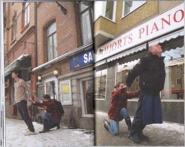 The photographs and dialogue that appear in the book are also included in Webster’s Göteborg År 2000 (2009), a video based on a 1913 essay of the same name that was written by a sixteen-year-old boy, Uno Eng. Webster dug the images out of Göteborg’s Stadsmuseum archive and timed them with a narration by Jens Leckman of Eng’s already secondhand narrative. In the essay, Eng recounts a meeting in a coffee shop with his uncle Karl Teofil Theodorsson, who fervently and drunkenly discloses a secret—a vision in which a winged vacker flicka rewards him for his civic service to the city by sweeping him eighty-seven years into Göteborg’s future, allowing him to see its progress. Some scenes in this now-past hereafter seem dreamlike in the present: airships can be summoned from rooftops; men wear huge collars advertising successful business firms. Others sound more familiar: wide streets are filled with the whirring sounds of industry; the harbor, a mile wide and three times as deep as it was in 1913, teems with ocean steamers. In his travels, Theodorsson sees his old horse in a museum—presumably stuffed, strapped to a wagon and surrounded by spectators. The horse, planted in unfamiliar, rarefied surroundings, speaks of changes that were uncertain in 1913, but inexorable in hindsight. The animal’s appearance in the vision of this turn-of-the-century dreamer also speaks of an ancient human ability to imagine seemingly sturdy, essential things as ephemeral bodies. These eventual pieces of evidence document their own outmoded functionality, but they also continue to act as marionettes that give voice to an elastic narrative.