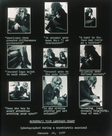 Roberta's Body Language Chart, 1976; photograph; 20 x 40 in. Courtesy of the Artist and Gallery Paule Anglim.